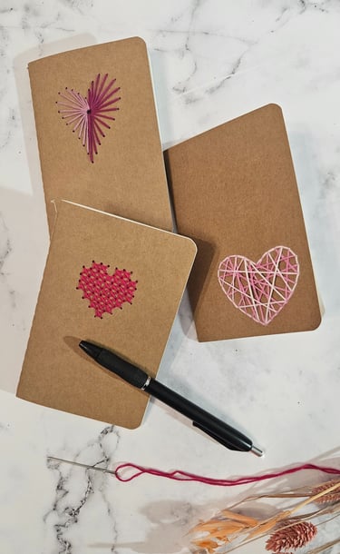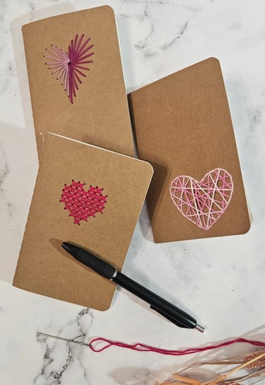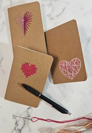 Make two adorable punched and stitched journals with Artist Tiffany Knopow. Participants will get to choose their favorite design and use embroidery floss to stitch the design. Keep one of these small journals for yourself and give one to your Valentine! All supplies are included, no experience necessary.